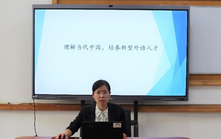 在党课分享中,徐淑丽老师从《习近平谈治国理政》融入外语教学、以“三进”理念促教研教改和学生发展和培养能提高中国国际话语权的新型人才三个方面,分享了自己参加“理解当代中国”系列教材培训的思考和心得。