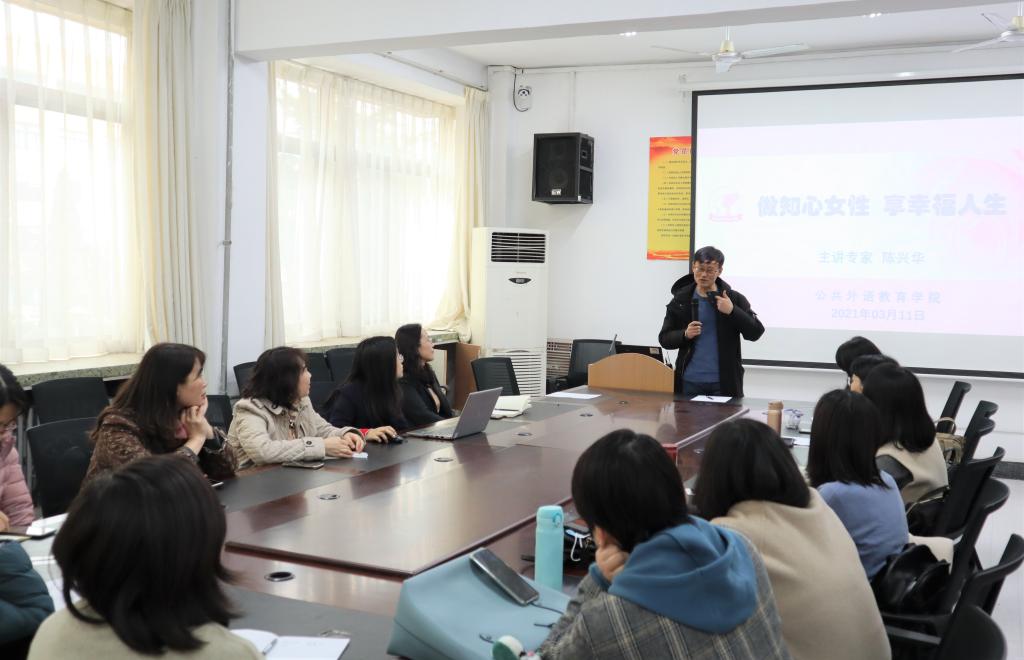 趣味运动会结束后,学院邀请我校师范学院的陈兴华老师为学院全体教职工做了题为“做知心女性,享幸福人生”的心理健康讲座。讲座通过线上线下两种形式举行,陈老师从家庭教育心理学角度,解析了亲子关系、夫妻关系、成年子女与老人的关系等家庭问题,帮助大家进行积极心理建设。讲座中互动频繁,现场气氛活跃,信息量大,深受老师们的喜爱,大家纷纷表示受益匪浅。