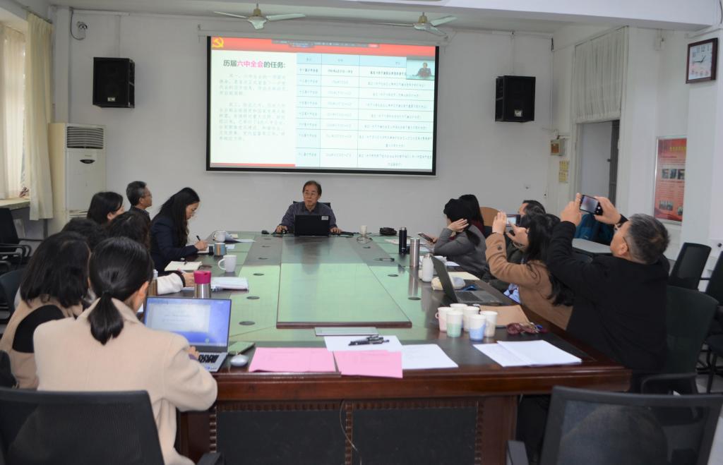 邀请青岛大学思政大课堂中心主任刘正刚在睿思楼202会议室为全体教职工进行了十九届六中全会精神宣讲。学院党委理论学习中心组及教研室主任、教师代表现场参会,通过钉钉线上直播。院党委书记刘海荣主持。