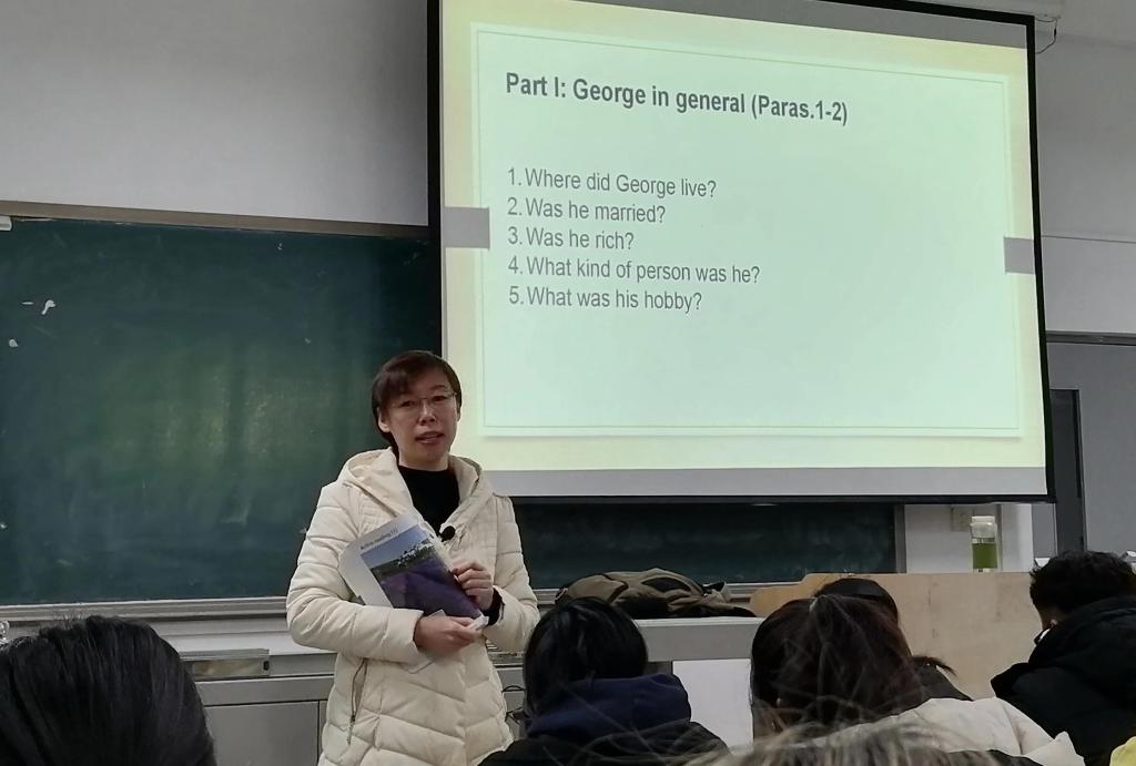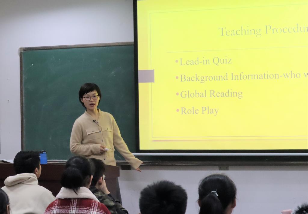 金家岭校区观摩课由丁霞老师主讲,内容是《新标准大学英语》第一册第6单元“The Armchair Traveller”。课堂上,丁老师以四种文体写作为切入点,用一只碗为例,以简驭繁,教学生如何用四种文体写作;随后给出文章的主要内容,让学生们练习给文章分段,增强语篇分析能力;在文章的前两段穿插翻译练习,巩固“得意忘形”的翻译手法;在文章的后半段穿插Skimming和Scanning的练习,重温细读和略读的阅读技巧;在文章的最后布置创意写作练习“What might have happened to George if he had gone to Provence?”丁霞老师最后用“Step out of your comfort zone”作为思政育人切入点,以自己做脱口秀的经历为例,鼓励学生走出自己在学习、生活中的舒适区,勇于打破积习,迎接新挑战。学生反响热烈、互动频繁,课堂气氛活跃。