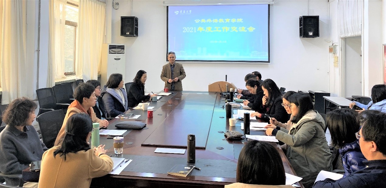 在睿思楼202会议室召开了2021年度工作交流会。学院各教研室主任、综合办、教学办、党务、外事、宣传、竞赛等团队负责人等进行了述职交流。会议由院长国林祥主持,学院党政领导班子出席会议。