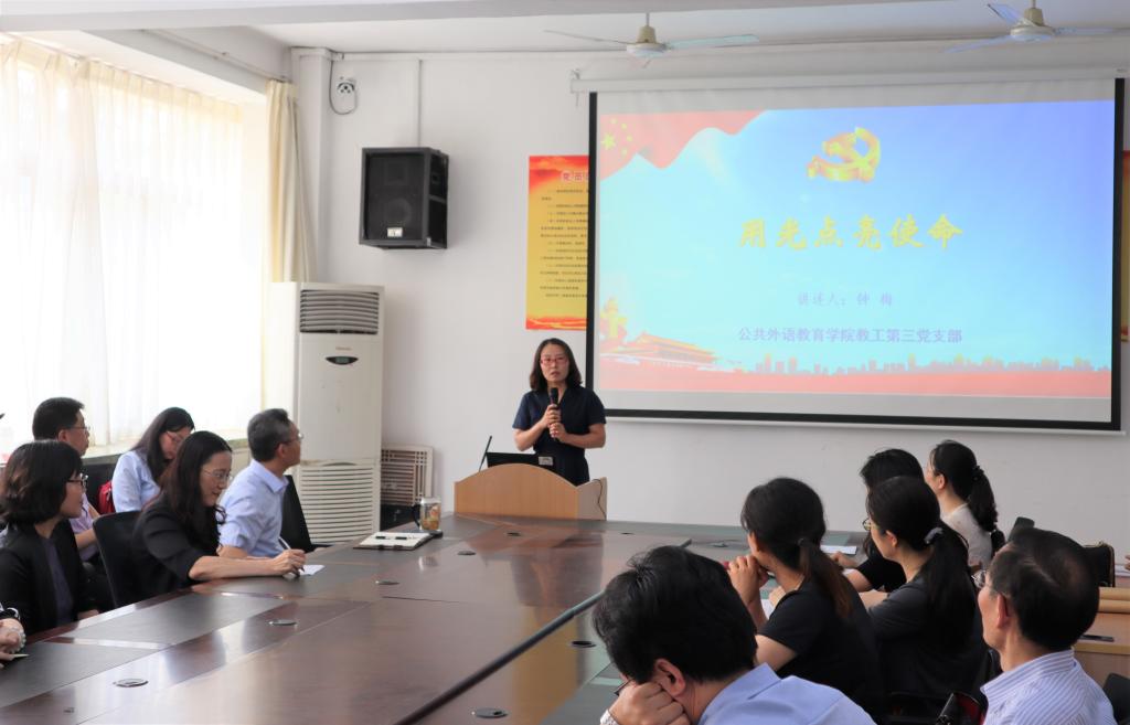 会上,首先由国林祥院长讲党课——革命精神是党和国家的宝贵财富,重点讲解了长征精神、沂蒙精神、王杰精神、脱贫攻坚精神等一座座中国共产党人的精神丰碑;接下来张惠同志做了“我来讲党课:信仰为本,立德树人;国际视野,中国情怀”的宣讲,钟梅同志做了“我和我的支部:用光点亮使命”的宣讲。