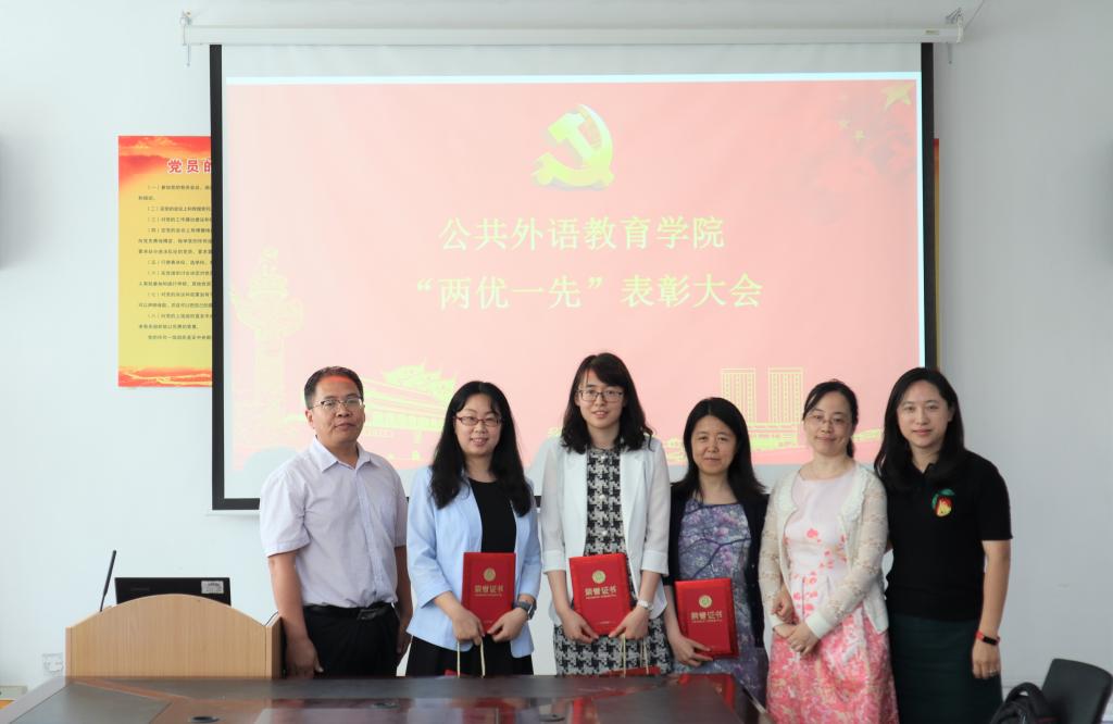 学院党委领导班子成员和教工党支部书记分别为获得表彰的优秀个人和先进集体颁奖:李晓敏、张恬、张惠荣获“优秀共产党员”称号,蒋轶群荣获“优秀党务工作者”称号,教工第一、二、三支部荣获“先进党支部”荣誉称号。同时表彰了比赛优秀奖获得者两名,分别是“我来讲党课”比赛优秀奖获得者张惠和“我和我的支部”比赛优秀奖获得者钟梅。