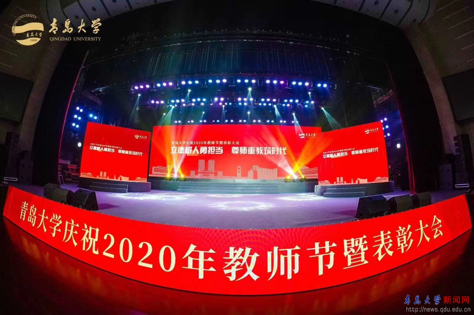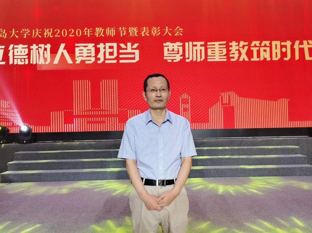 9月10日下午,我校庆祝2020年教师节暨表彰大会在青大剧院隆重举行。在疫情防控常态化形势下,今年的大会采取线上和线下结合的方式举办。校领导、全体受表彰人员和有关单位代表参加现场会议;学院领导和全院教师通过钉钉系统线上收看。