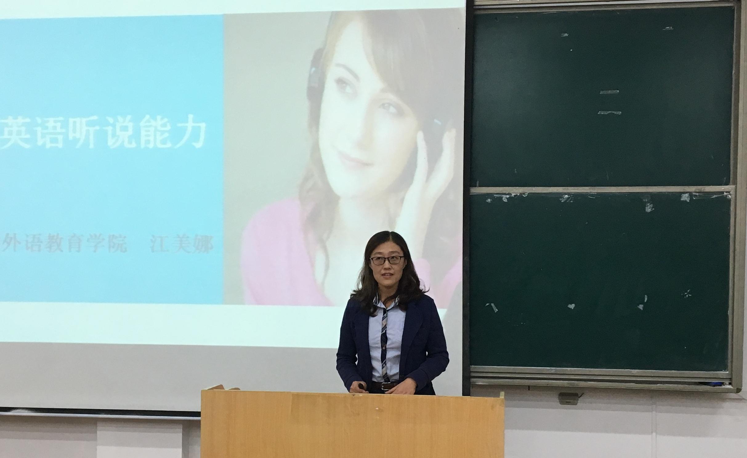 江美娜和于明杰老师的讲座聚焦大学英语听说这一难点。江美娜做了《如何提高听说能力》的讲座,通过对比高中英语与大学英语的异同,对听力和口语问题进行归因,进而提供解决对策和辅助学习APP;于明杰做了《输入与输出》的讲座,澄清了同学们在听说方面的困惑和误解,并就如何练习听力和口语尤其如何进行听力与口语的融合学习做了具体指导。