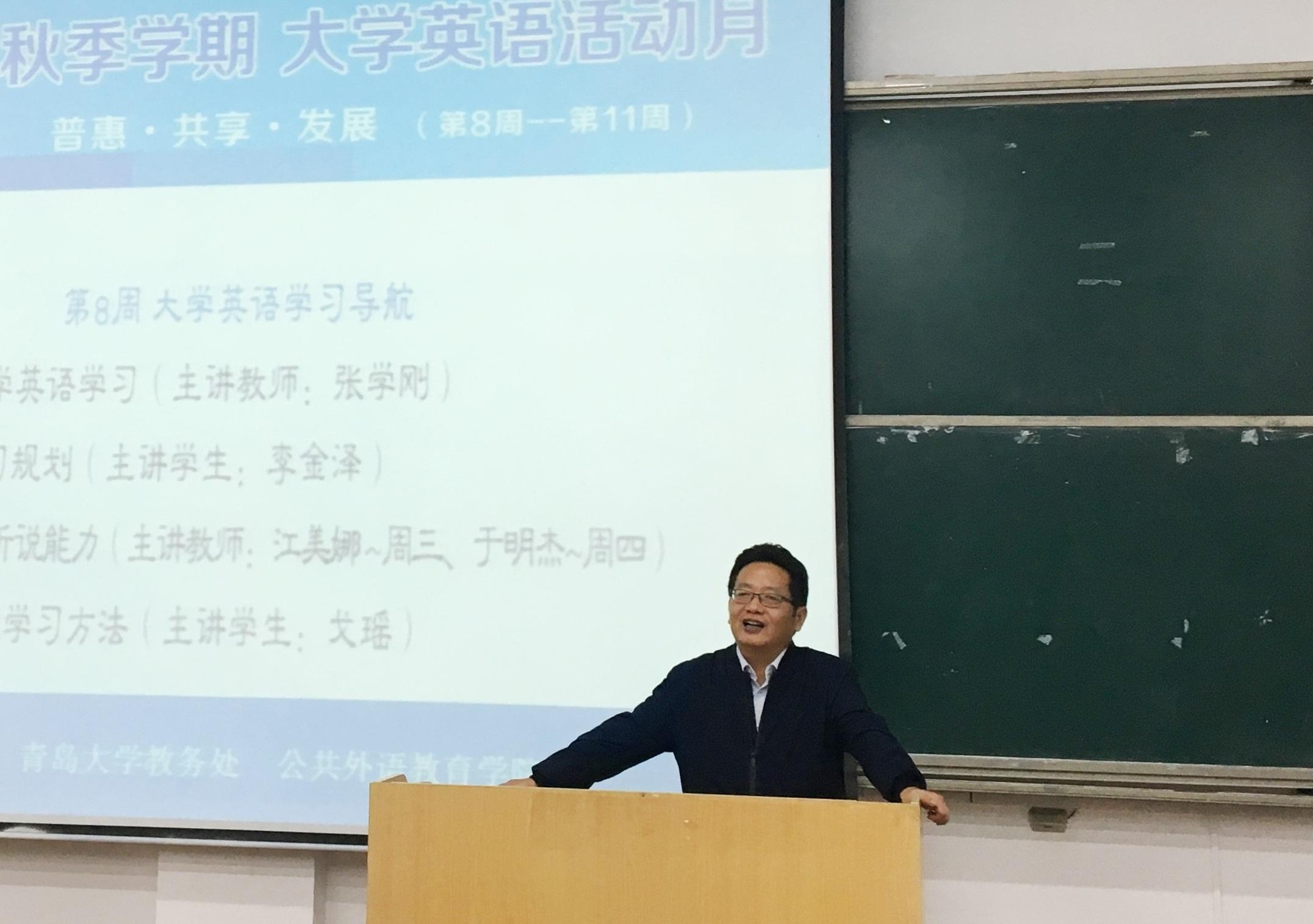 10月23、24日晚,2019年秋季学期“大学英语活动月”启动仪式暨大学英语学习导航系列讲座在金家岭校区西院1教111教室和浮山校区博学楼101教室举行。教务处处长戴更新,ag九游会官网