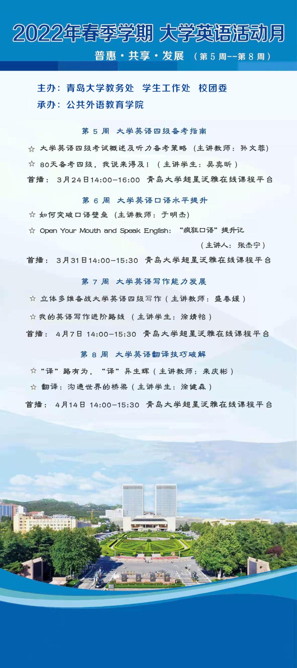 普惠·共享·发展 | 2022年春季学期大学英语活动月预告