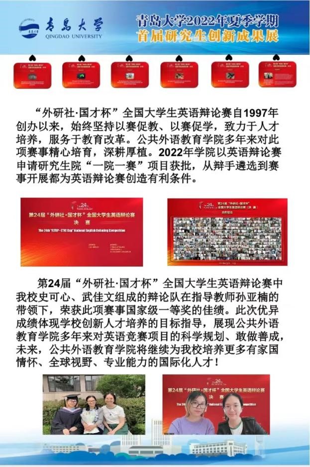 7月7日至8日,青岛大学2022年夏季学期首届研究生创新成果展在学校会议中心成功举办。ag九游会官网