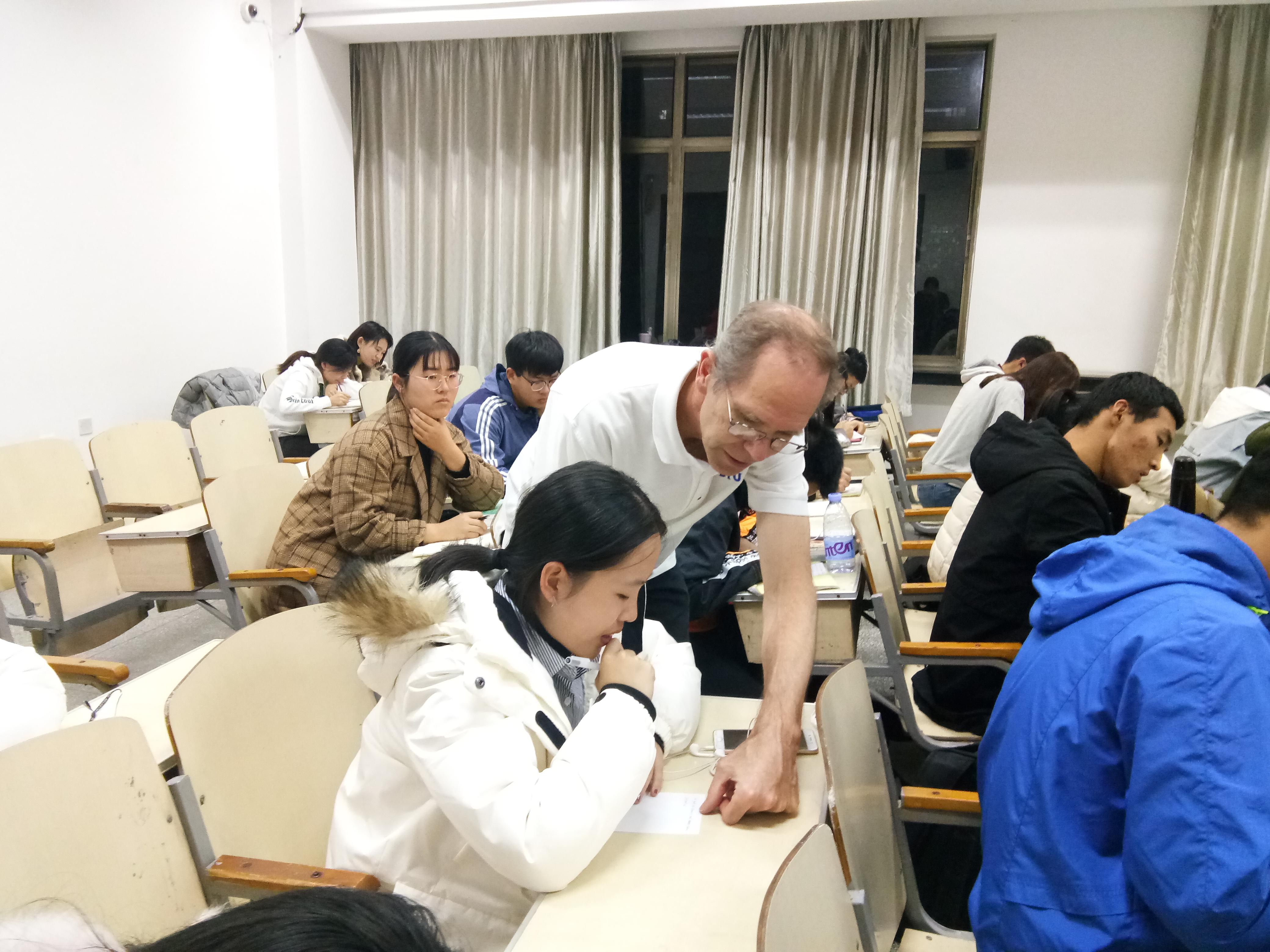 在互动环节中,Sterling老师让大家在纸上列出自己的三个优势和三个不足,相互分享,并针对他人的不足,提出改进建议。接下来老师们指导大家进行自我介绍。对于同学们提出的有关问题,三位老师耐心解答。