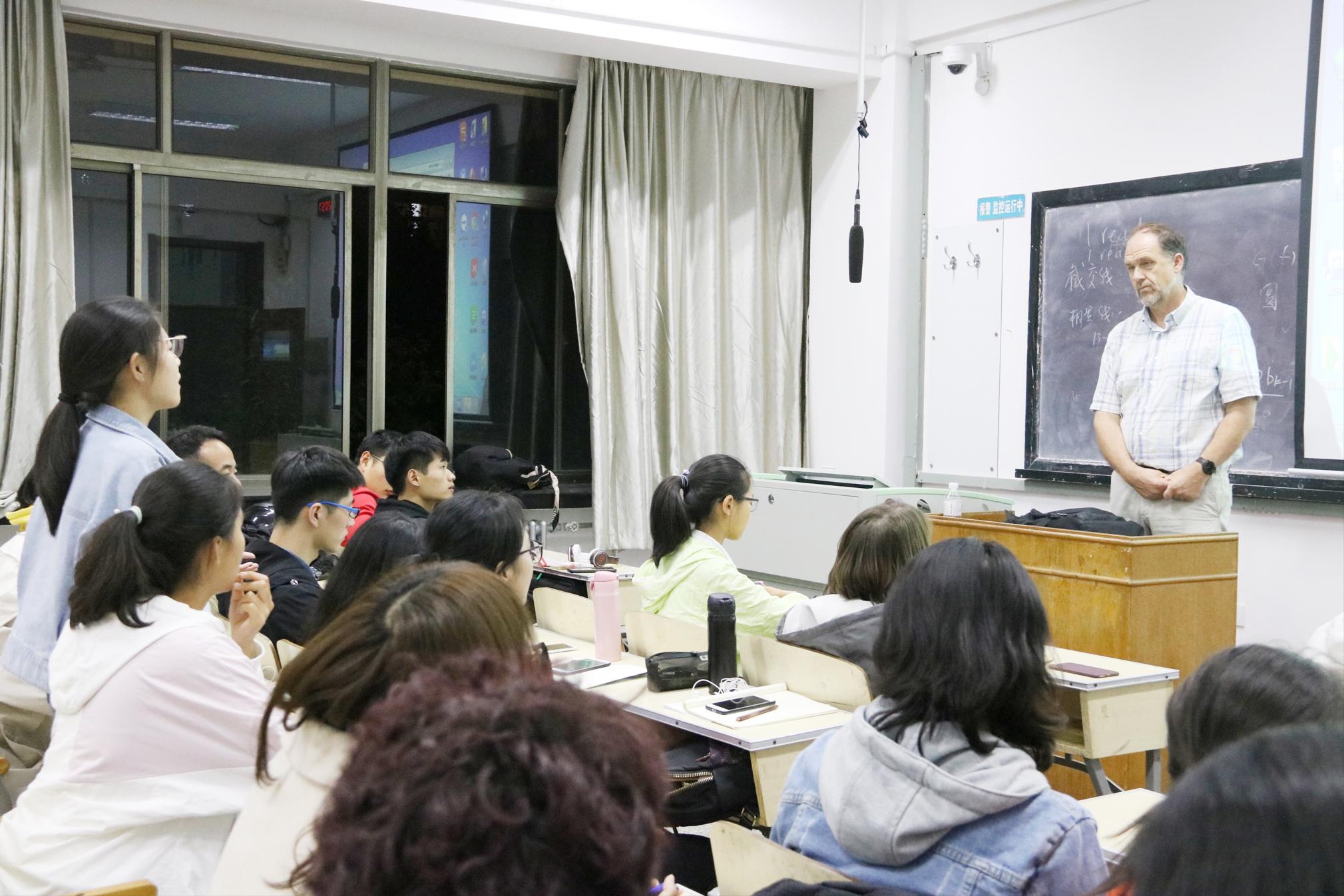 Ivan老师向大家讲述了自己的家庭背景和工作经历,然后以同学们在学习英语语法过程中遇到的困难为例,引出本次沙龙的主题“Hold On—Never Give Up”。接下来,Ivan老师通过讲述具体事例鼓励大家勇于面对挑战,为了梦想不懈奋斗。随后,大家观看了一个关于如何培养grit(坚毅)的TED演讲,本段演讲强调了持续不断保持学习状态的重要性,同学们深受教益。