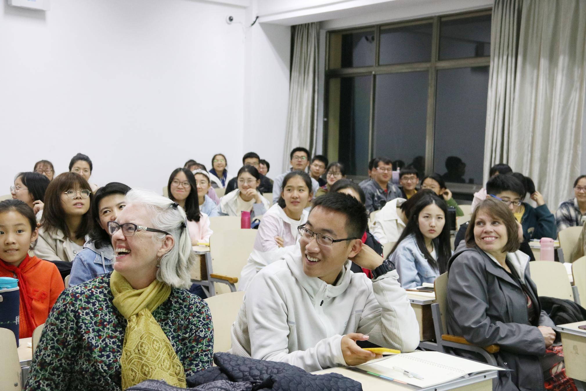 Ivan Franck、Sterling Larsen和Carol Larsen老师和同学们一起分享了如何直面挫折、永不放弃的话题。
