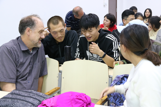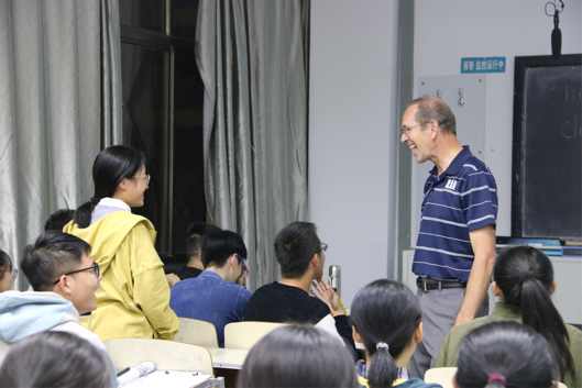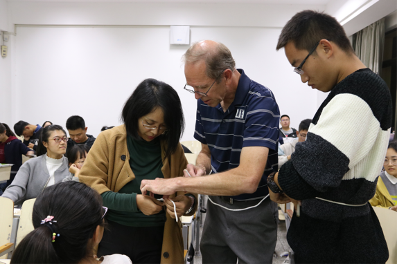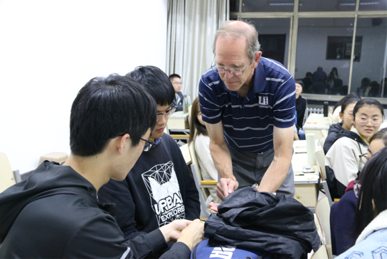 外教Sterling Larsen、Carol Larsen和Ivan Franck三位老师带领同学们一起学习了户外远足英语,分享了户外活动经历。