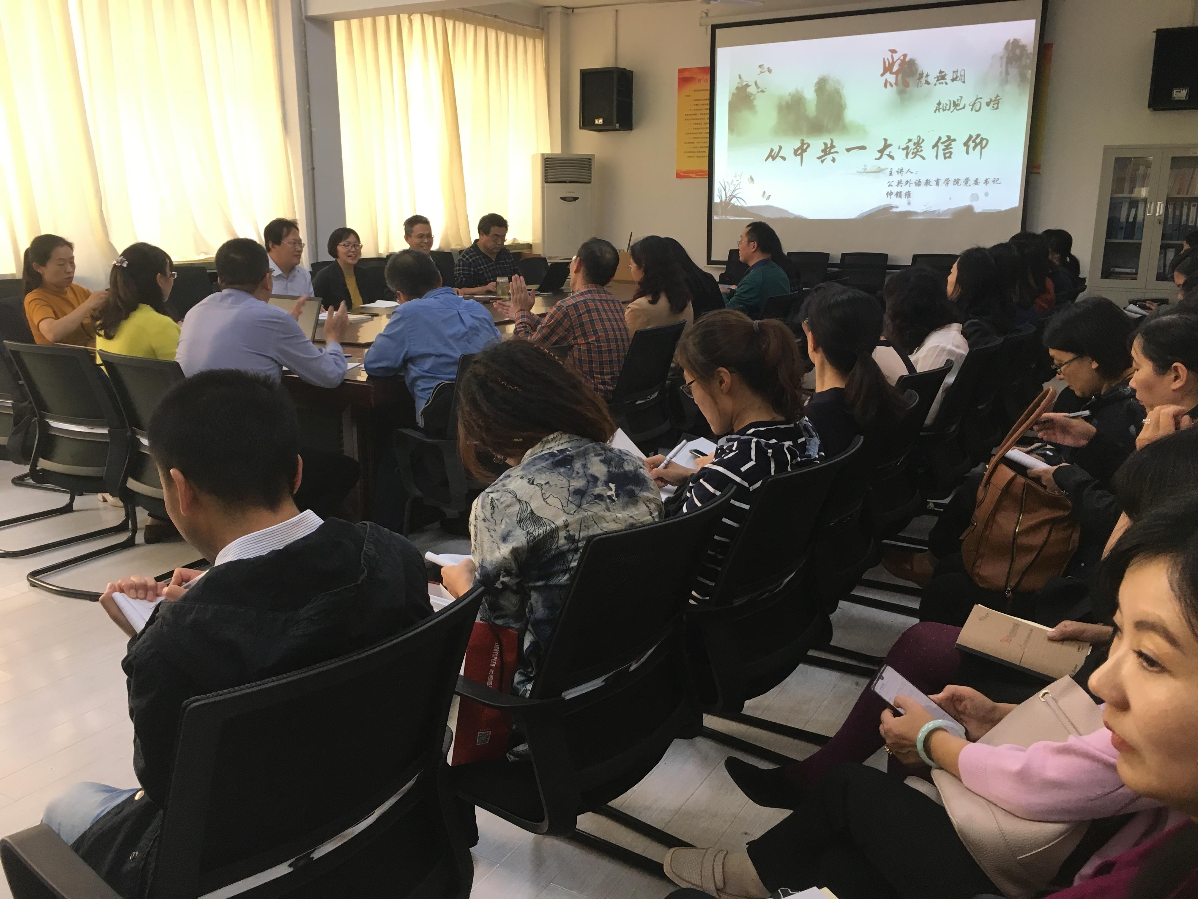 党课上,仲锁维带领大家通过对中共一大的学习来谈中国共产党的信仰,通过对中国共产党第一次全国代表大会的一些情况的介绍,让党员们充分领悟中国共产党的信仰,更加深入思考共产党人的初心使命。仲锁维指出,毛泽东不仅是一个革命家,也是一名哲学家、书法家、诗人,他永远怀着信心,面对革命中的艰难困阻,极具浪漫主义精神。参加中共一大的有13位代表,最终站上天安门城楼的只有毛泽东和董必武。后来毛泽东成为中共的核心,毛泽东“为人民谋幸福,为民族谋复兴”的信仰和追求,以及重视人民的初心,拥有着大批信仰追随者,事实证明,党的核心是伟大事业成功的根本保证。毛泽东的著名演讲稿《为人民服务》适应时代要求,鼓舞了共产党人,并最终建立了中华人民共和国,这一道德思想并没有过时,至今仍被中国共产党各级党政机关及其工作人员贯彻于工作之中。国际国内形势风云变幻,共产党员要有辨别是非的能力和决心,应清醒认识到自身肩负的历史使命,要积极深入地开展学习,要坚定共产党员的初心和使命,才能够把学校、学院建设好。各党支部要强化队伍建设,组织集中学习,发挥其战斗堡垒作用,结合学院特点把教书育人工作做好,不仅对于学院的发展而且对于教师个人的发展也有着很重要的意义。党员要利用学习资料进行自主学习,每一名党员都要提交个人学习计划,做好个人学习记录。