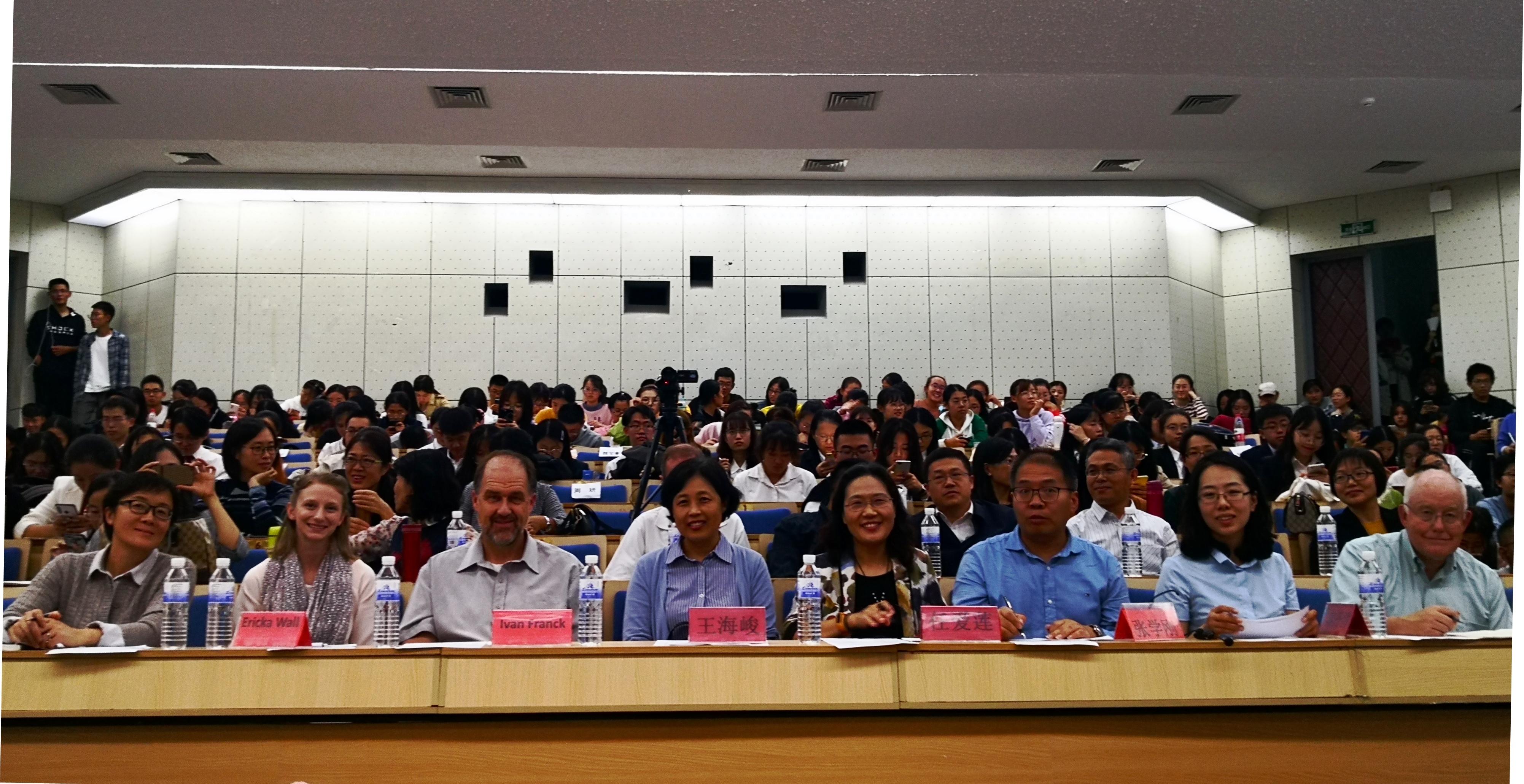 王海峻、任爱莲、张学刚、秦丹雪、Ivan Franck、Ericka Wall、外语学院孙旻,David Swan担任提问评委。