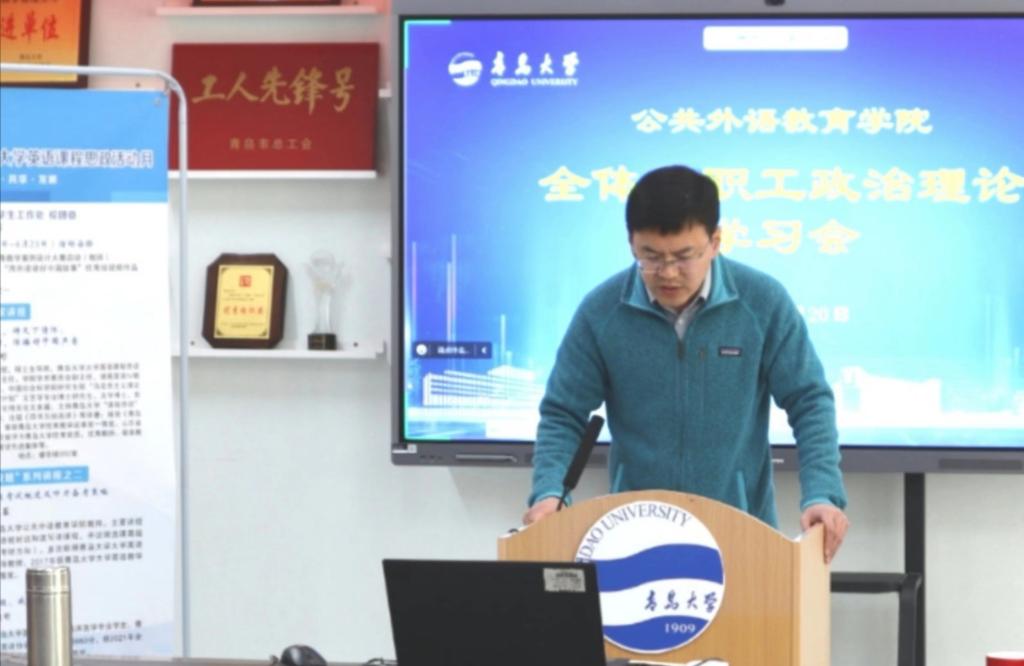 学院教工党支部组织委员贾磊老师带领大家集体学习了学习贯彻习近平新时代中国特色社会主义思想主题教育工作会议精神,明确了“学思想、强党性、重实践、建新功”的主题教育总要求,有力有序推进主题教育深入扎实开展。党委书记刘海荣指出要紧密结合学院大学英语教学实际,落实主题教育各项重点措施。