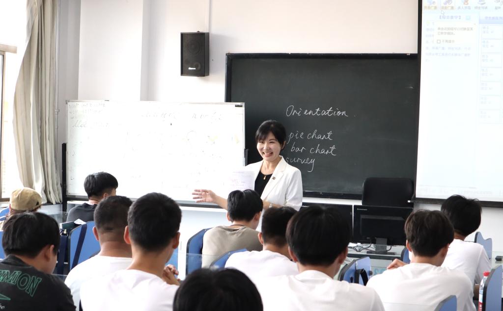 刘誉老师的《实用英语听说》课程。在课间休息时,陈涛与任课老师和同学们亲切交流。