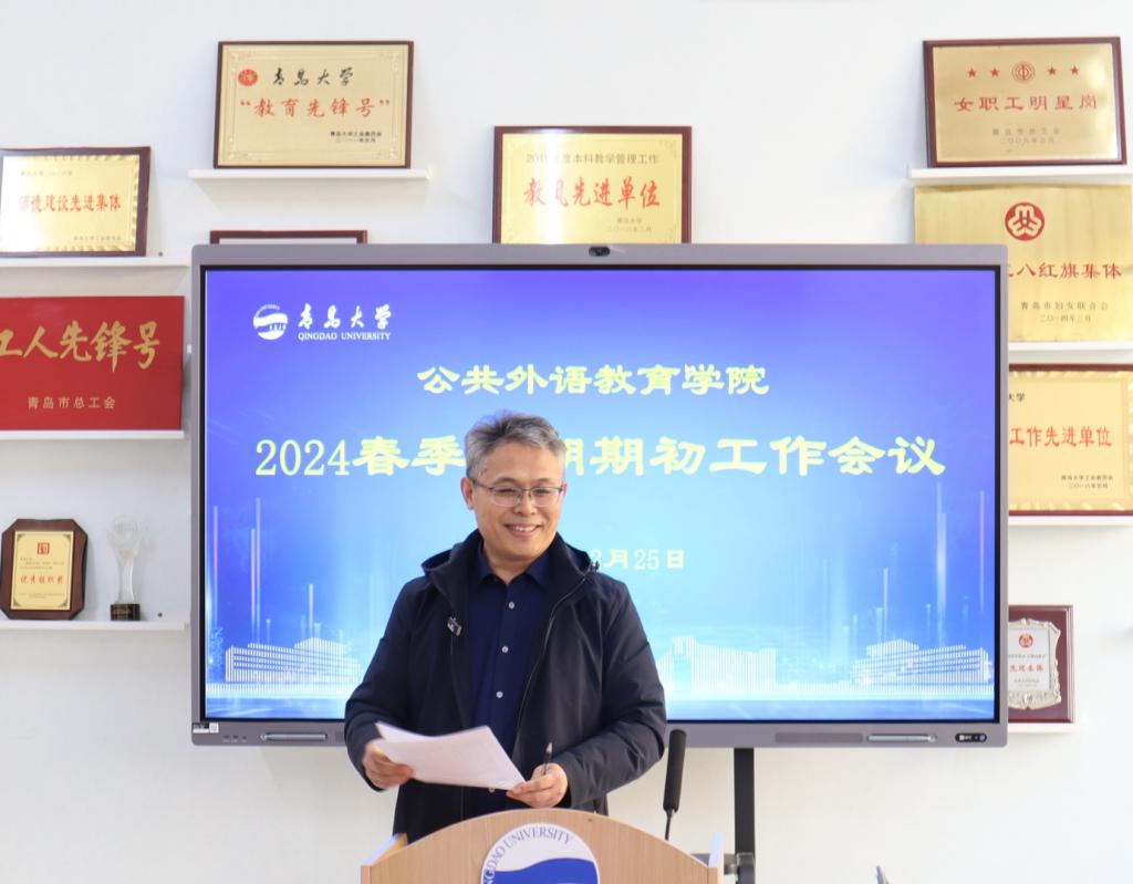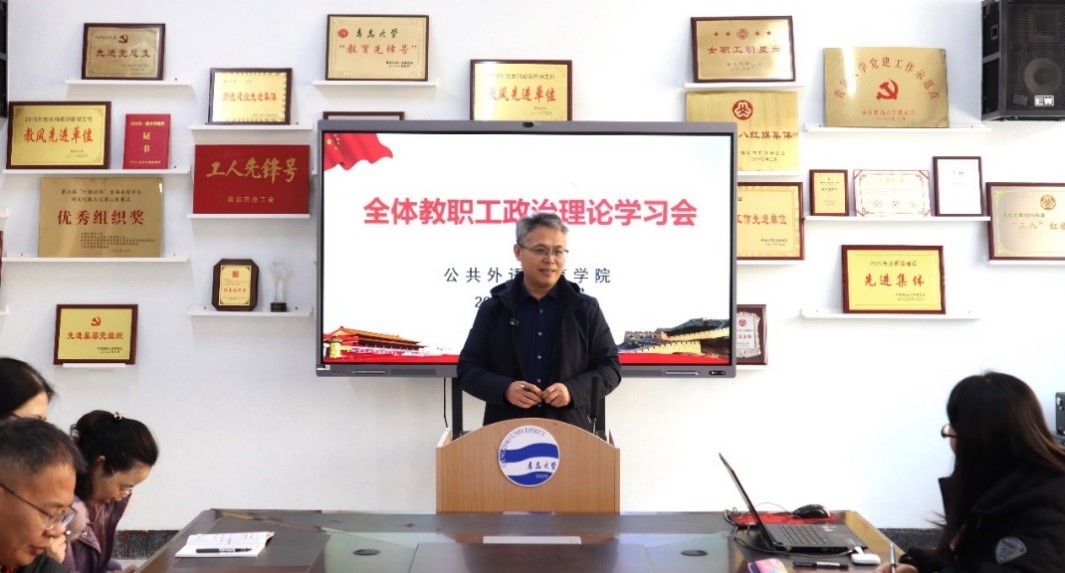 会议集体学习了习近平《在二0二四年春节团拜会上的讲话》。国林祥传达了校党委书记胡金焱在中共青岛大学第三届委员会第十二次全体(扩大)会议暨2024年春季学期中层干部研讨班上的主旨报告精神,并结合学校2024年重点工作交流了学院的工作思路。