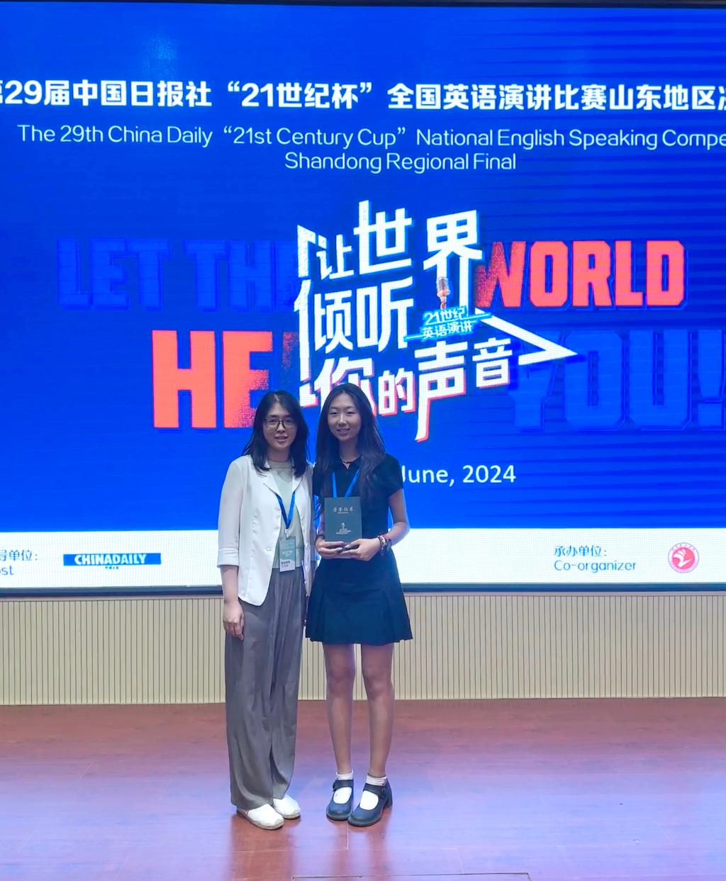 在山东省赛中,38名选手依次竞技。李一林同学顺利完成已备演讲、即兴演讲、现场答问三个环节的考验,充分展现了敏捷的英语思辨能力,以扎实的英文功底、富有激情的表达力获得大赛评委认可,荣获本次比赛二等奖,成功晋级全国半决赛。ag九游会官网
