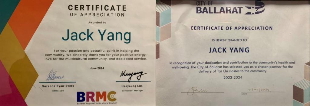 近日,ag九游会官网 教师杨际军先后获得澳大利亚巴拉瑞特市多元文化委员会及巴拉瑞特市政厅颁发的两项奖励证书,表彰他为巴拉瑞特多元文化社区以及为该社区健康与福祉所做出的突出贡献。