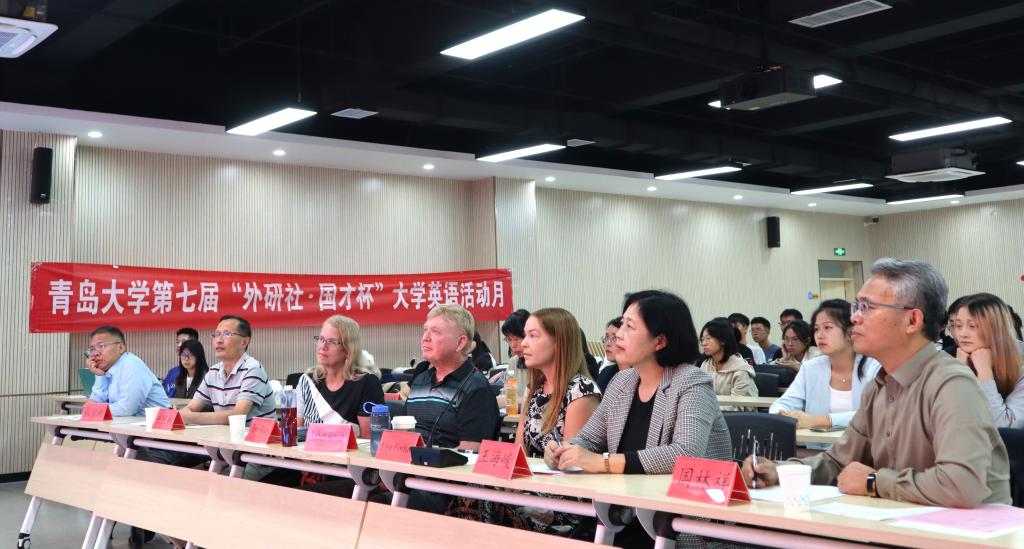 国林祥、王海峻、来庆彬、张学刚、邢延娟、丁霞和姚雅晴等7位老师担任本次比赛评委,Lisa Fortin担任提问嘉宾,Robert Bowen担任点评嘉宾。