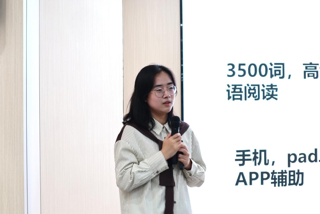的孙培星老师和法学院2023级梁玉洁同学。孙培星针对大学英语学习过程中的困难和障碍,从学习的重要性、词汇学习与运用、如何进行听力和口语训练等方面讲解了大学英语学习的基本规律和方法技巧;梁玉洁从听、说、读、写四个方面分享了大学英语学习心得和四级考试高分经验,以及参加全国大学生英语竞赛和外语能力大赛的获奖经验。
