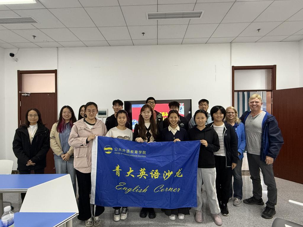 、青岛大学英语服务志愿者协会于浮山校区西院慧创空间201室成功举办“Movies&TV Shows——中外师生共同赏析著名影视作品”青大英语沙龙活动。外籍教师Robert Bowen、Debra Bowen以及数十位本科及研究生同学参与了本次活动。