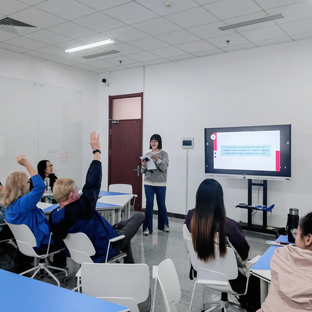最后,两位老师向在座的同学们提出了一个更深层的话题“如何充分利用英语影视作品来提高个人的英语水平和跨文化能力”,引发了大家深入的思考和热烈的讨论。
