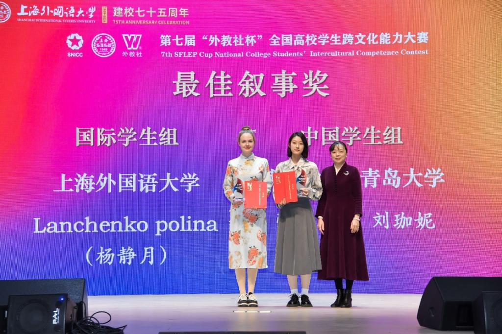 11月29日至12月1日,第七届“外教社杯”全国高校学生跨文化能力大赛全国总决赛在上海外国语大学举行。由我校外语学院刘珈妮、青岛医学院解谨名和外语学院郑元昊组成的青岛大学团队获得全国总决赛中国学生组一等奖、最佳案例奖,外语学院刘珈妮获得最佳叙事奖。ag九游会官网