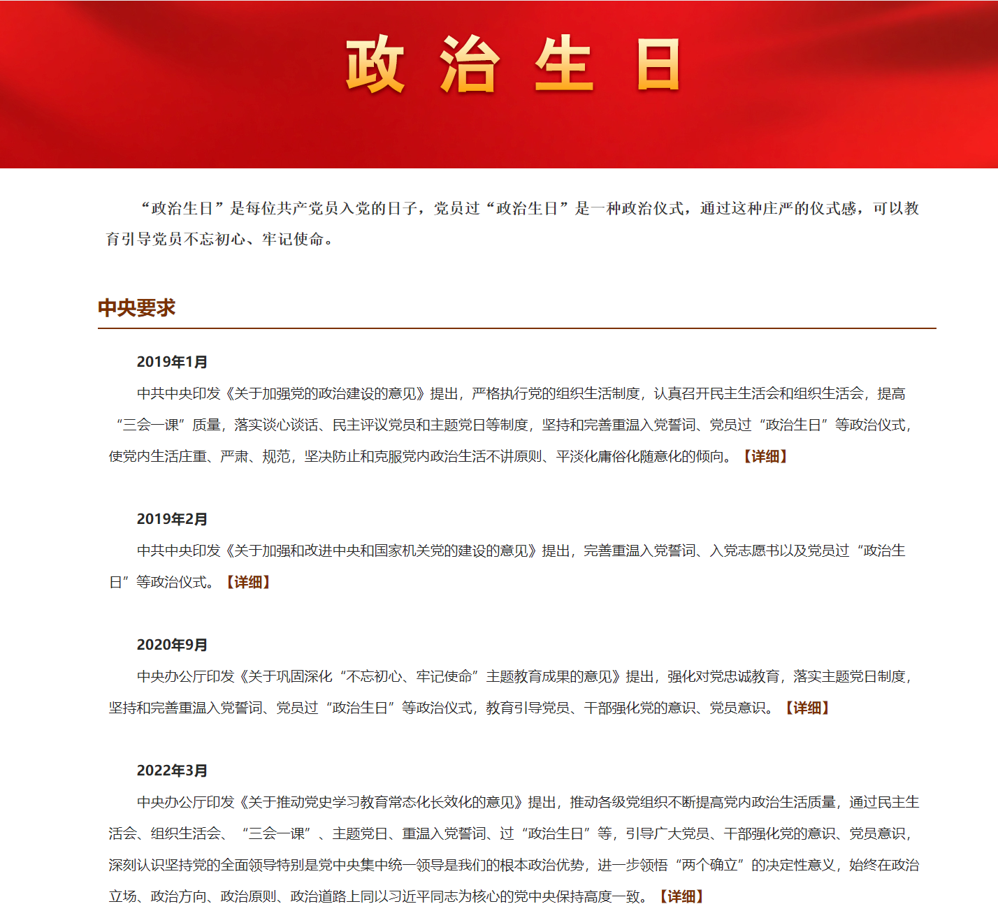 党员政治生日,指党员的入党日期。这个概念强调的是党员政治生命的开始,是党员对党的热爱与忠诚的体现。党员政治生日的重要意义主要体现为:强化党员政治身份认同,激励党员不忘初心、牢记使命,提升党员归属感、荣誉感和使命感,促进党员教育,提高党性修养,增强党内政治生活原则性,提高党组织凝聚力。