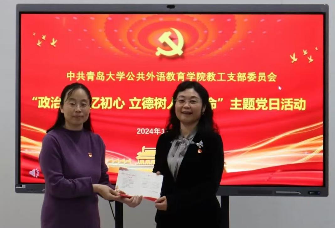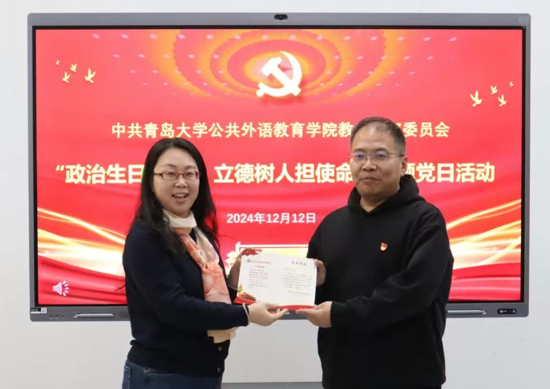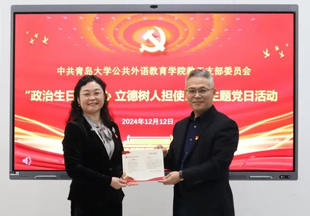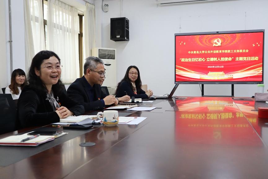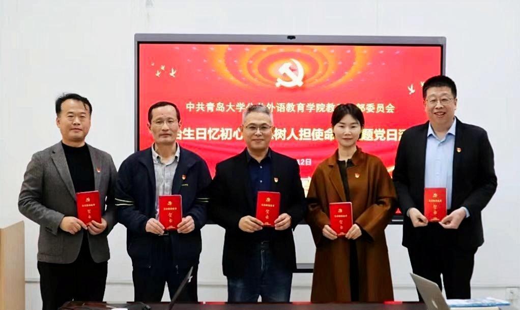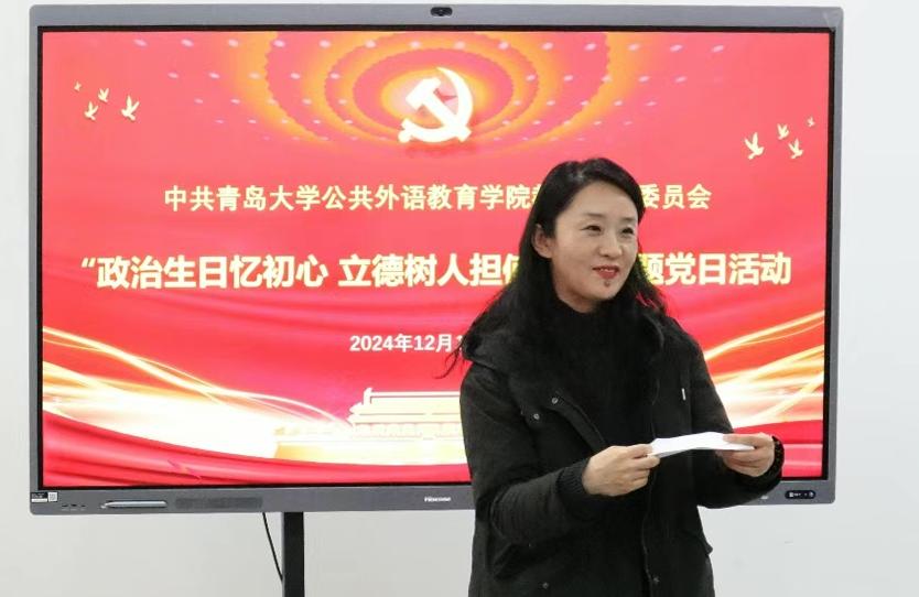 教工党支部举办 “政治生日忆初心 立德树人担使命”联合主题党日活动,为第四季度入党的党员教师庆祝政治生日。本次主题党日活动由“五个一”组成,即学习一次党的知识,赠送一张生日贺卡,重温一次入党誓词,分享一次初心感言,留存一份美好记忆。主题党日活动由学院党委委员、教工第三党支部书记李晓敏主持,学院全体教工党员参加。
