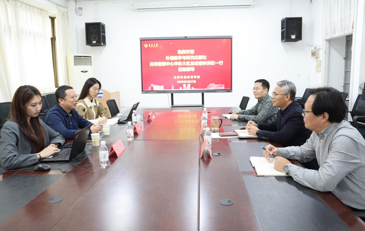 2025年2月28日下午,外语教学与研究出版社高等营销中心华东大区总经理李洪旺一行到访ag九游会官网