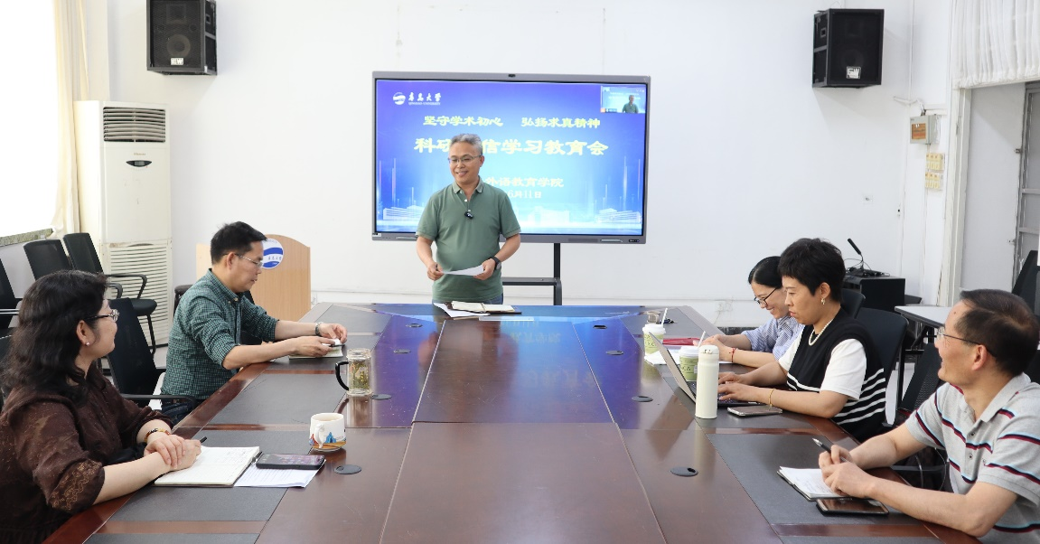 在睿思楼202会议室召开“坚守学术初心 弘扬求真精神”科研诚信学习教育会。院长国林祥主持会议,学院全体教师参加会议。