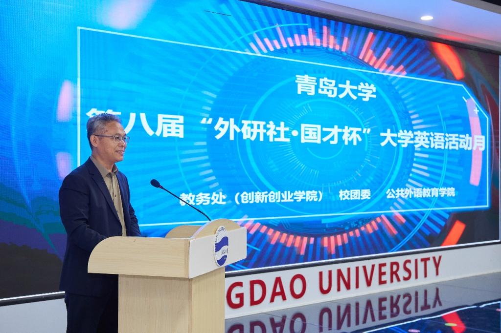 10月16日下午,青岛大学第八届“外研社•国才杯”大学英语活动月在浮山校区大学生科创文化中心二楼青年大讲堂隆重开幕。教务处副处长吕途出席开幕式并致辞。ag九游会官网