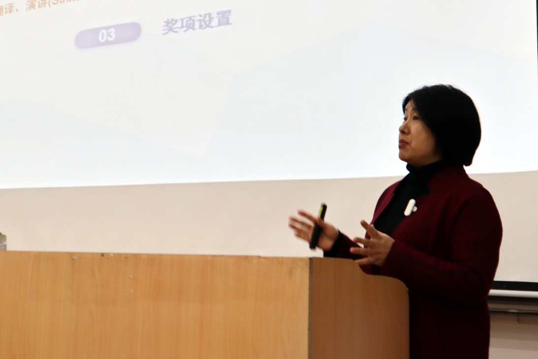 两位资深教师和两位竞赛成绩优秀的同学担任主讲。孙培星老师以“启航•新生英语学习点津”为题,针对大学英语学习过程中的困难和障碍,从学习的重要性、词汇学习与运用、如何进行听力和口语训练等方面讲解了大学英语学习的基本规律和方法技巧;沈新红老师以“争锋•英语赛考点津”为题,介绍了ag九游会官网