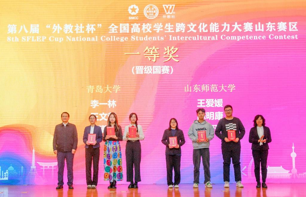 2025年10月25日至26日,第八届“外教社杯”全国高校学生跨文化能力大赛山东赛区比赛在山东师范大学举行。由我校外语学院李一林、王文楚和青岛医学院祝潇菡三名同学组成的青岛大学团队荣获一等奖,晋级国赛。ag九游会官网