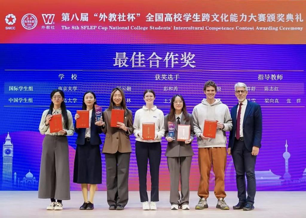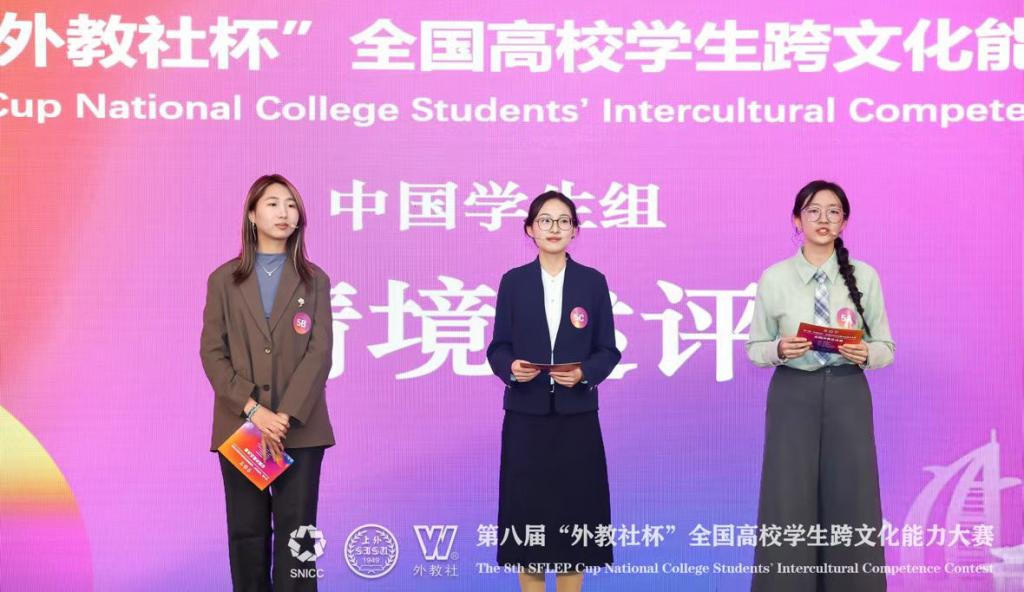 我校参赛团队积极备赛、努力拼搏,以省赛第一名的成绩闯入全国决赛。经过跨文化案例开发与展析、名言名句解读、知识问答、情景评述和讲述中国故事等多个环节的比拼,我校参赛团队展示了在跨文化理论知识与实践、国际视野、思辨能力、英语语言应用能力、演讲与沟通技巧等多方面的综合实力,获得了大赛评委的高度认可,最终荣获全国总决赛中国学生组一等奖。这也是我校继2022年以来连续四年闯入全国决赛,2024年以来连续两年进入全国总决赛并蝉联该项赛事全国一等奖。
