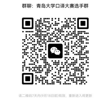 参赛选手须同时加入青岛大学口译大赛微信群(二维码如下)完成校内报名,比赛相关信息通过微信群发布。