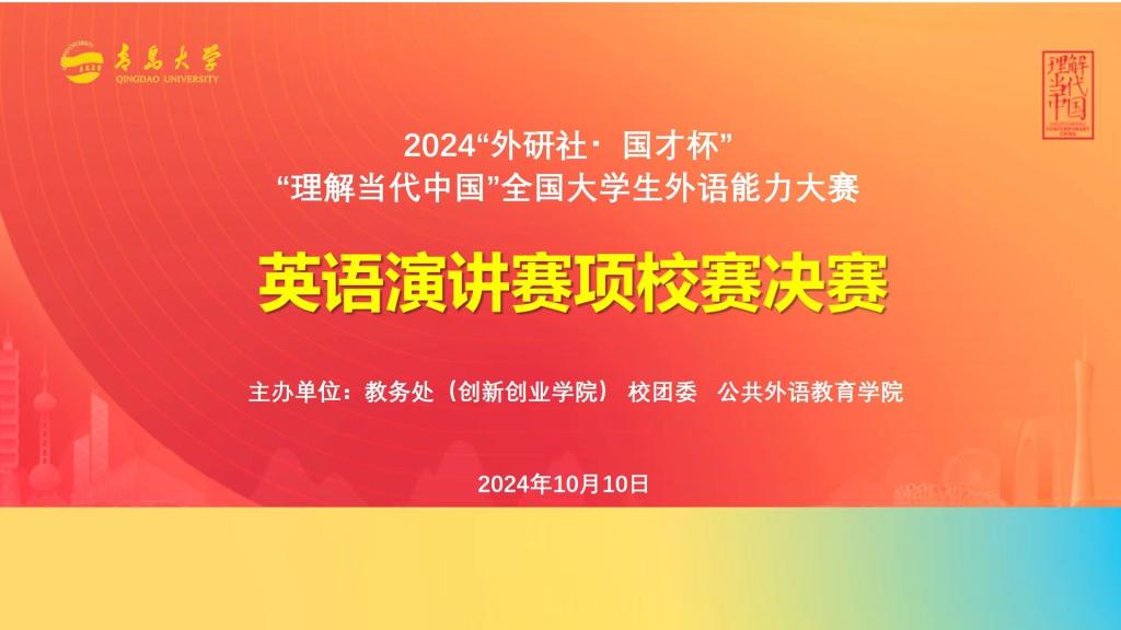 【预告】青岛大学2024“外研社·国才杯”“理解当代中国”全国大学生外语能力大赛英语演讲赛项校赛(非英语专业组)决赛