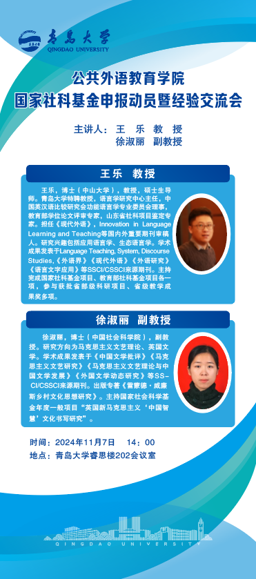 下一篇:关于公布青岛大学2024“外研社·国才杯”“理解当代中国”全国大学生外语能力大赛英语演讲赛项校赛(非英语专业组)决赛获奖名单的通知