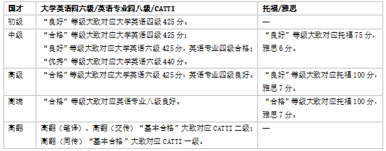 国才考试与国内外英语考试的对标
