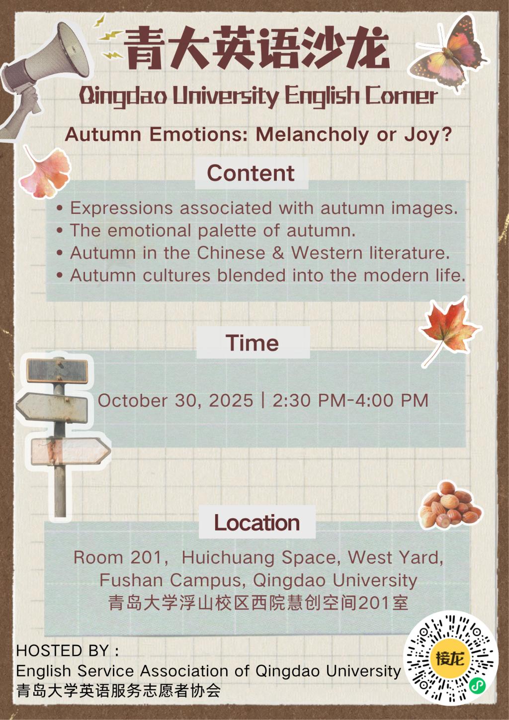 青大英语沙龙第37期:Autumn Emotions —— Melancholy or Joy?