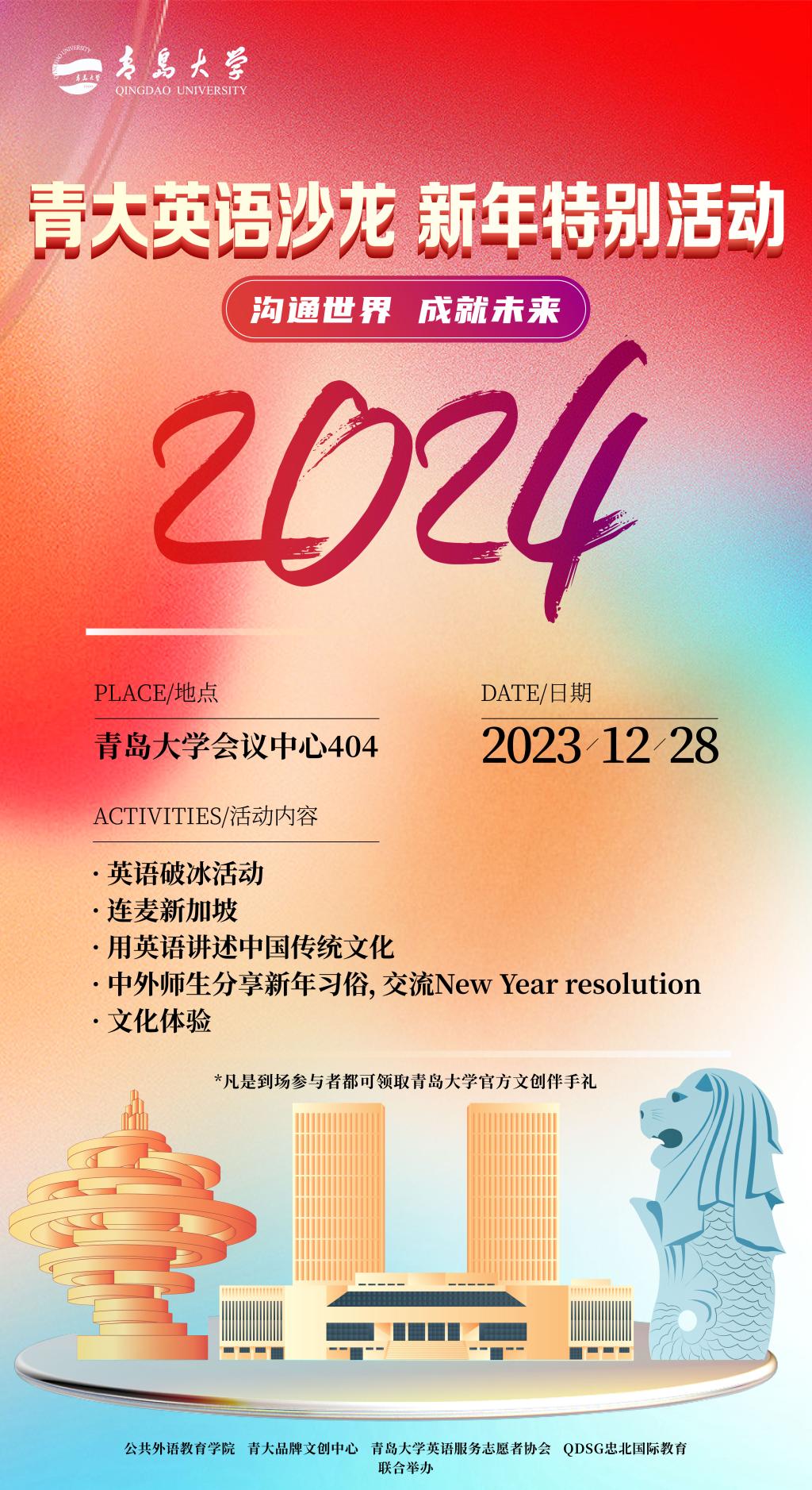、青岛大学英语服务志愿者协会与QDSG忠北国际教育、青大品牌文创中心,在会议中心404室举办了一场青大英语沙龙活动:Happy New Year——中外师生喜迎新年。ag九游会官网