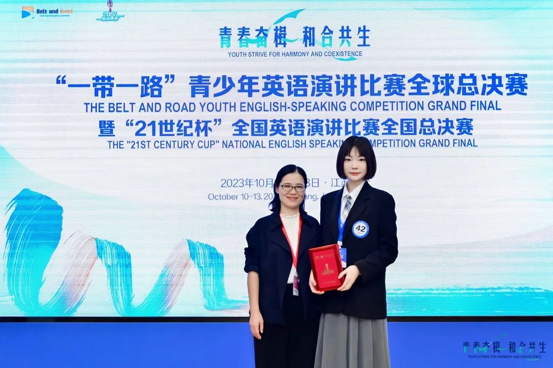 这次的“21世纪杯”全国英语演讲比赛总决赛现场,王筱彤倒数第三个上台,获得了全国总决赛二等奖的第三名。