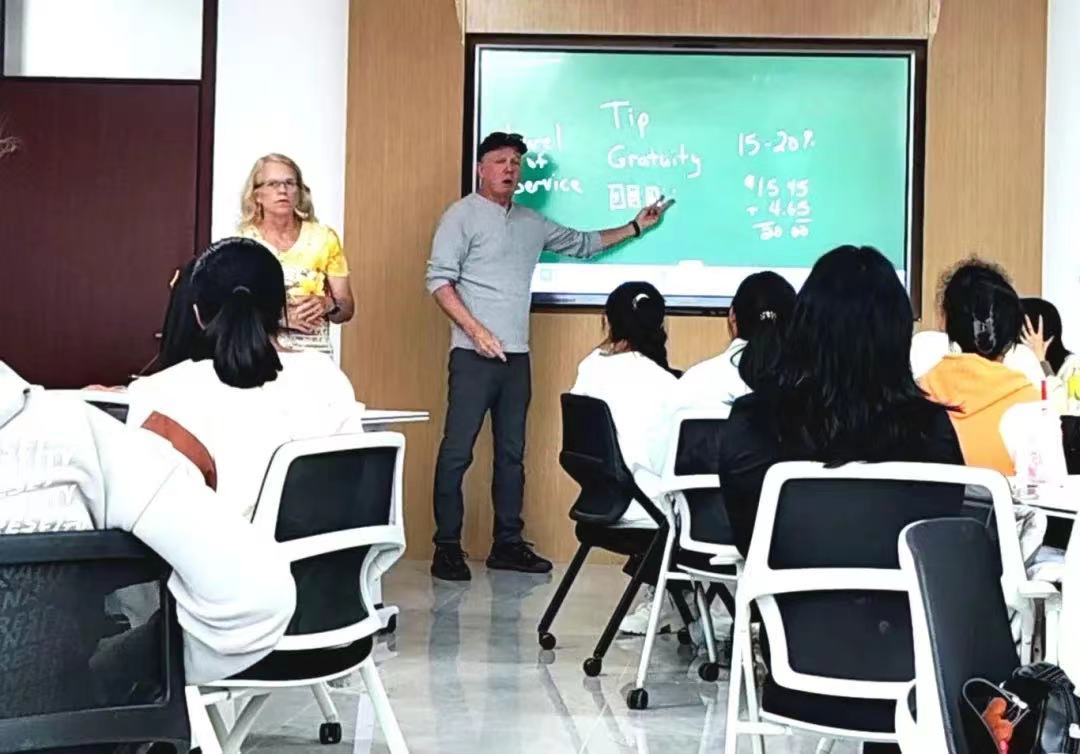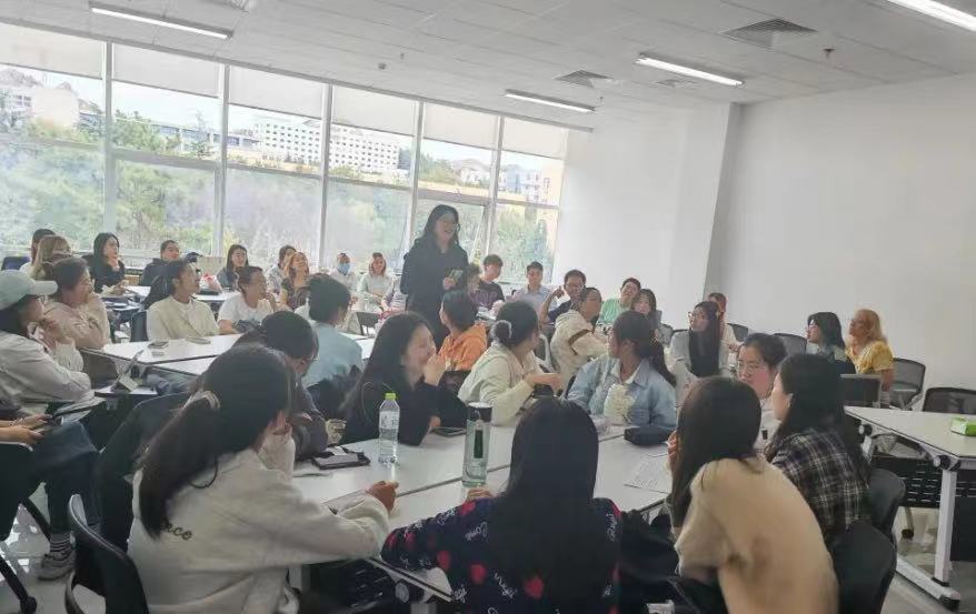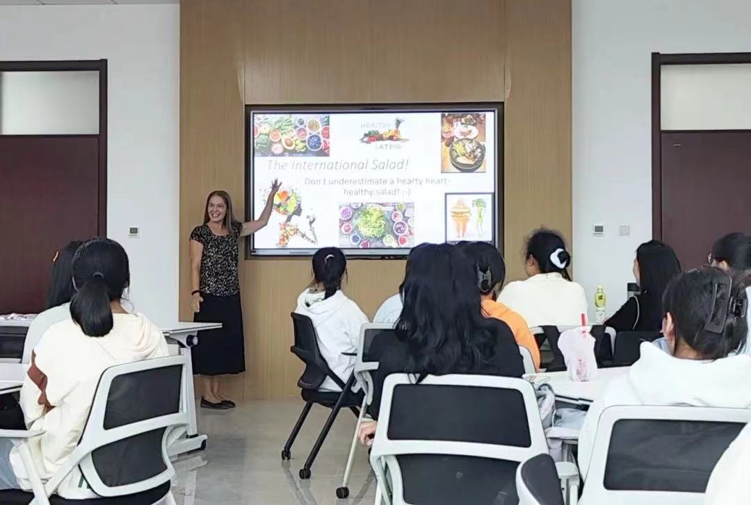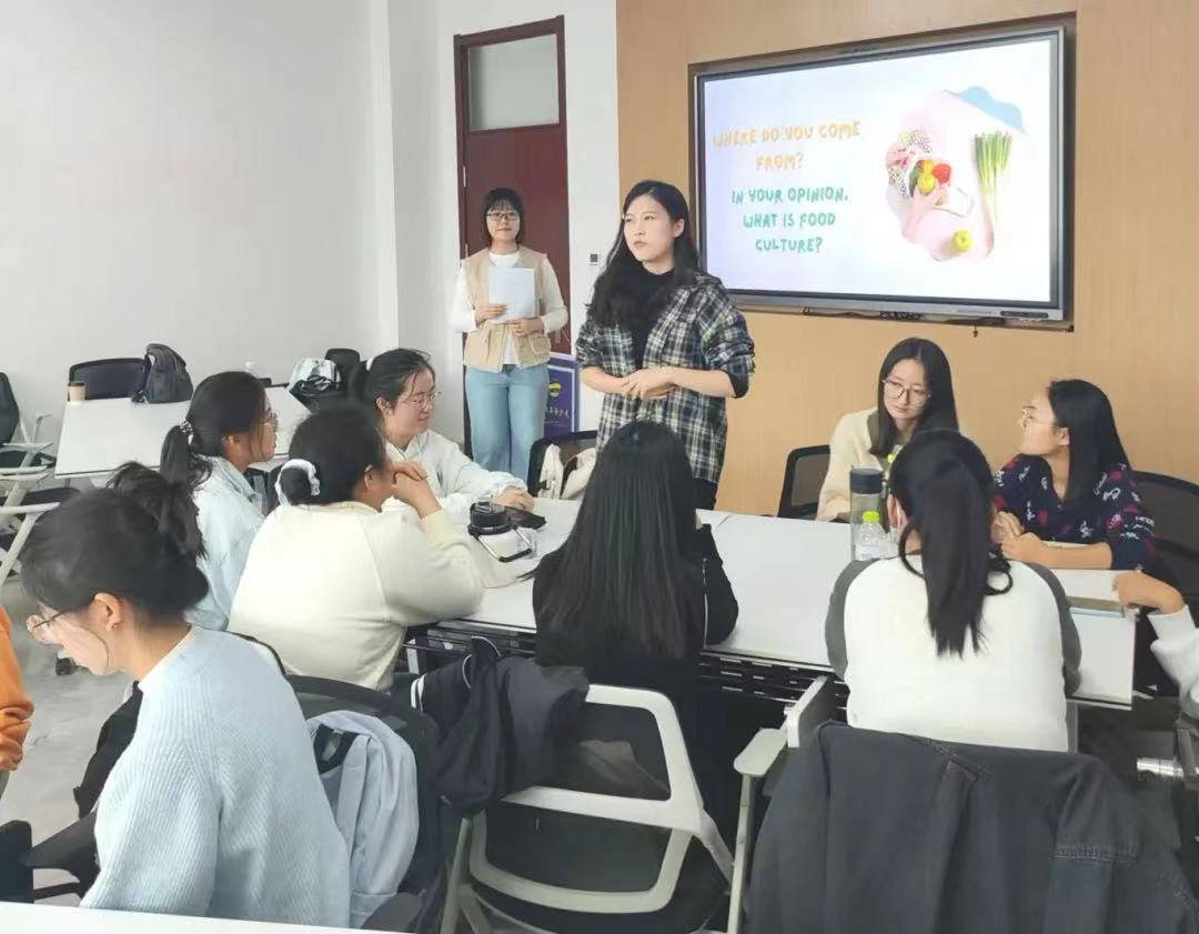 在场的同学们也积极举手发言,用英语介绍中国传统饮食文化、家乡特色美食,在交流中同学们既增长了饮食文化的知识,也结识了来自不同专业的新朋友。老师和同学们的笑声回荡在整个教室,大家沉浸在浓厚的英语学习氛围之中。