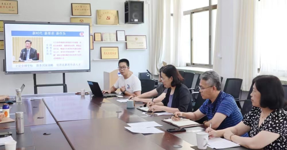 会议邀请校教务处教学研究办公室主任刘洋作了《教材选用与管理》培训报告。刘洋从“教材新基建”、“加强教材管理”、“学校政策解读”三方面,解读了教材管理的重要性和教材选用的工作程序等,并与参会老师进行了交流。