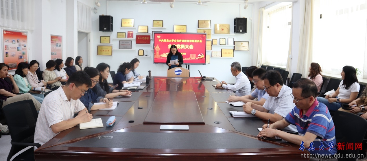 刘海荣宣讲了校党委书记胡金焱同志在校第四次党代会上所作《继往开来积厚成势在内涵式发展道路上加快建设高水平综合性研究型大学》工作报告精神,集体学习了会议确立的中心任务、战略安排、发展原则和实施路径等内容。刘海荣指出,要结合学院大学英语教学工作,全面落实立德树人根本任务,在高素质人才队伍建设、学科和课程建设、教研科研等方面推进学院工作高质量发展。