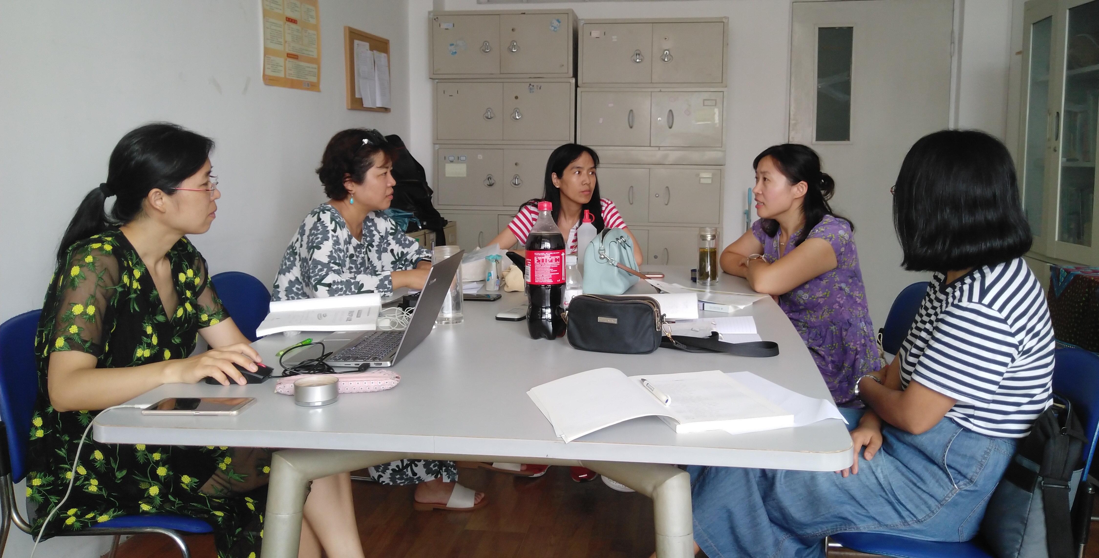 《美国文学与文化》课程团队在睿思楼217室开展教学研讨。在课程负责人、副院长印玲带领下,课程组唐丽伟、单爽爽、徐淑丽、邢延娟、邹恺莉5位主讲教师设计规划了课程结构、问卷调查、组织备课、平时成绩、期末考核等工作。