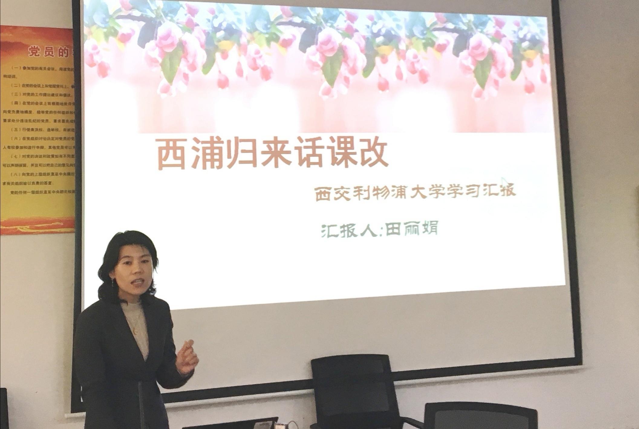 最后,田丽娟分享了她在西交利物浦大学参加课改研修的收获,主要涵盖5个方面:一是沉浸式及主题式教育理念,二是新时代对大学及大学教师的新挑战及新要求,三是信息时代、全球化、知识经济的整体环境下对大学生教学目标的重新思索及界定,四是研究导向型学习的流程及教师、学生在其中扮演的角色,五是目前一些有理解偏差的教育理念。田老师的报告从宏观角度对目前大学的教育改革意义进行了解读,并对大学教师“以学为中心”开展教学提出了独到的见解。