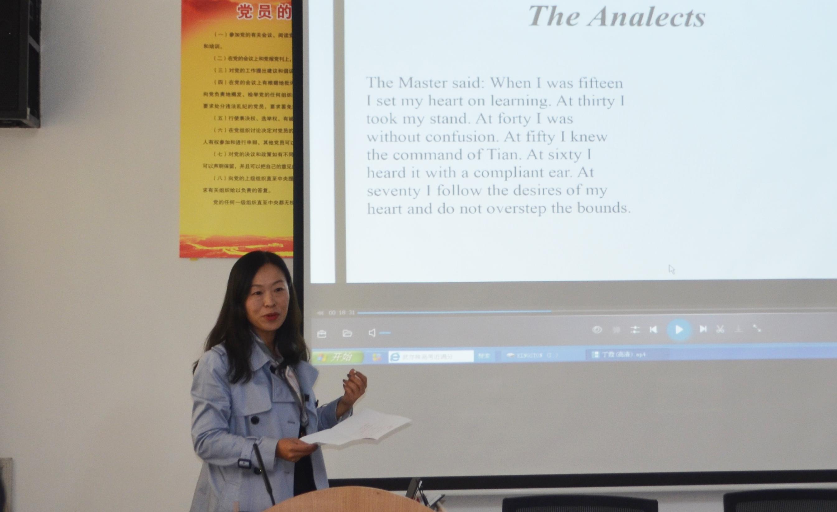丁霞老师通过对英文版《论语》的文本分析,加深学生对经典著作的认识,培养批判性思维,积极表达自己的观点。
