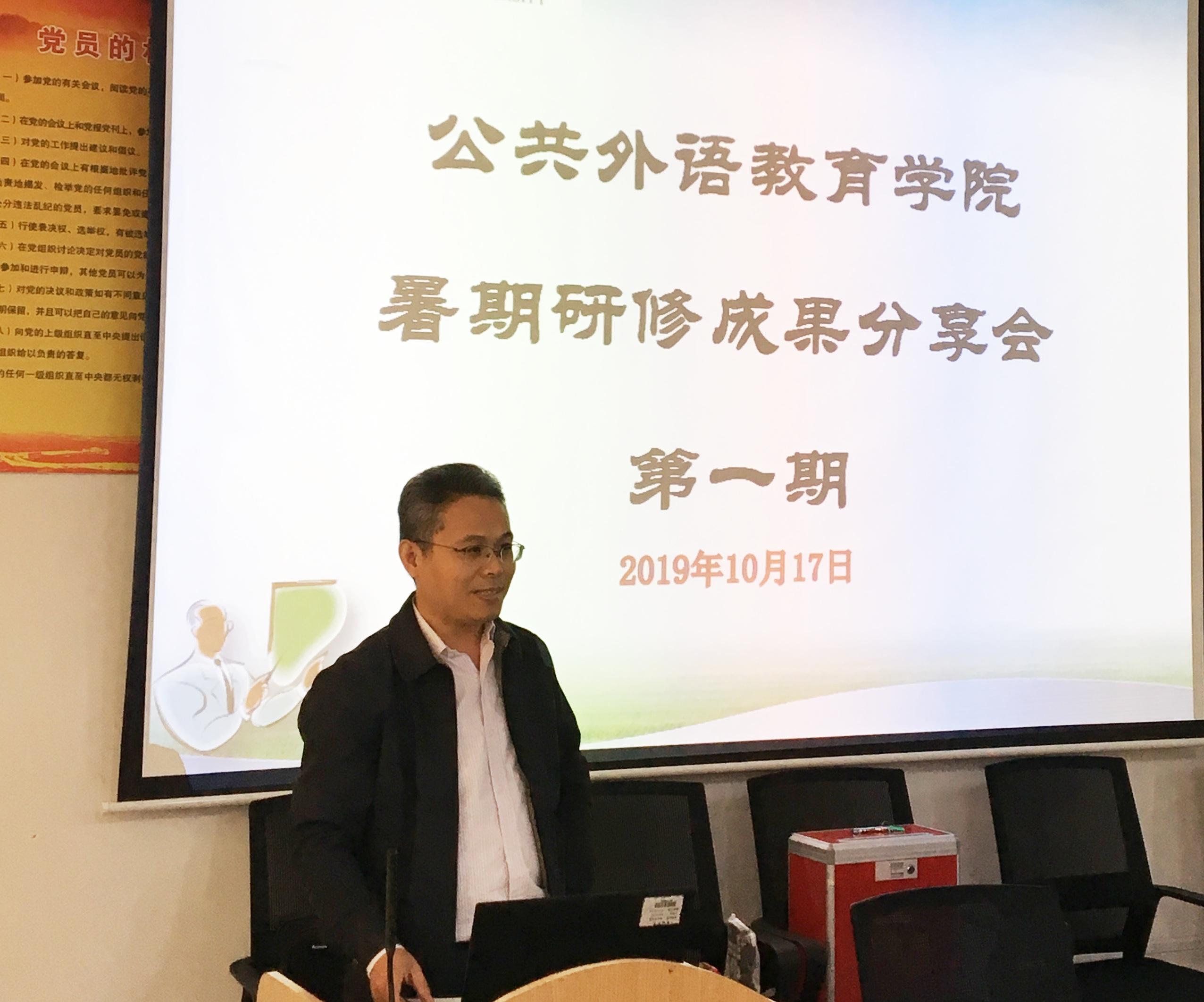 在睿思楼202会议室举办第一期暑期研修成果分享会。学院党委书记仲锁维、院长国林祥、副院长王海峻、印玲及全院教师参加会议,国林祥主持。